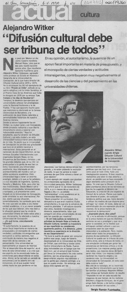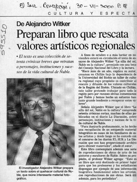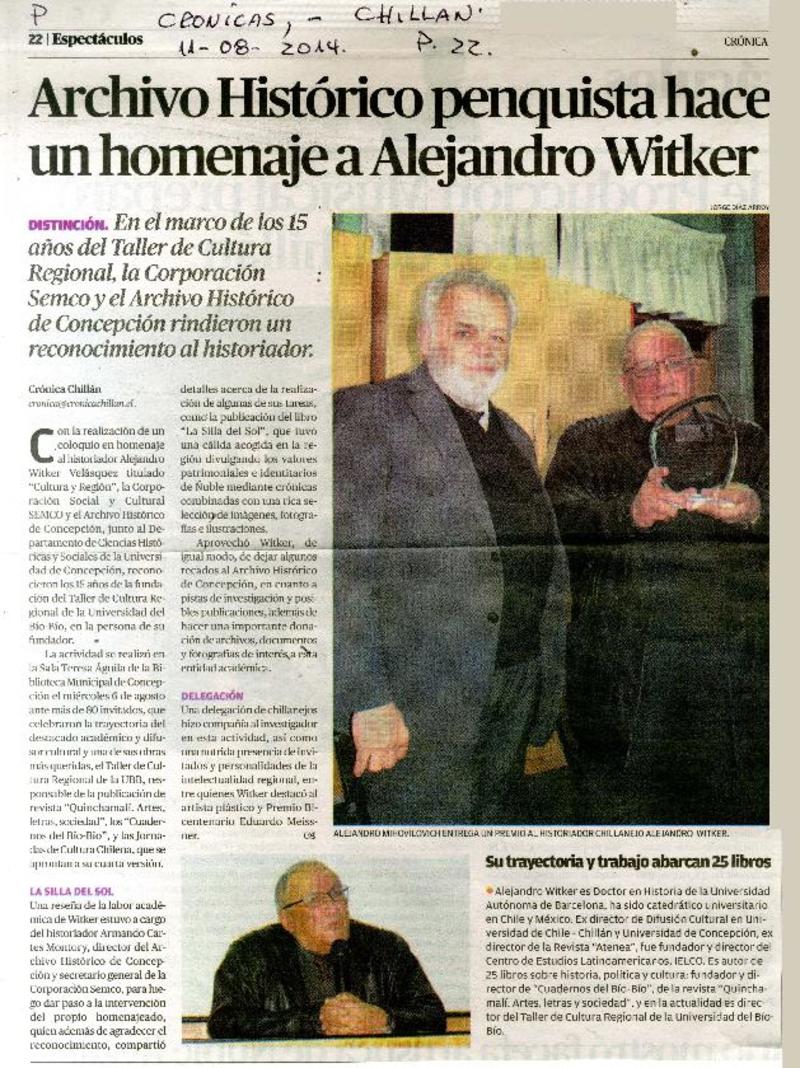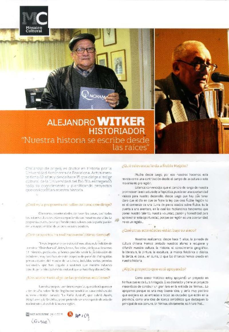 Alejandro Witker, nuevo pilar de la cultura en Chillán Viejo : [entrevistas] [artículo]