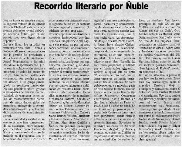 Recorrido literario por Ñuble [artículo]