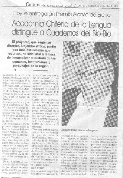 Academia Chilena de la Lengua distingue a Cuadernos del Bío-Bío. [artículo]