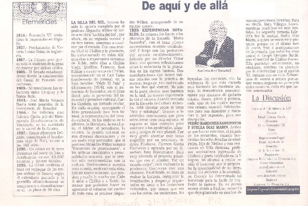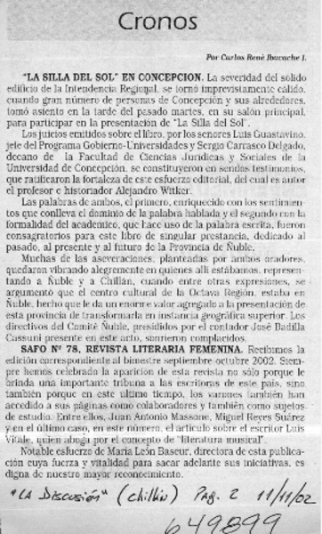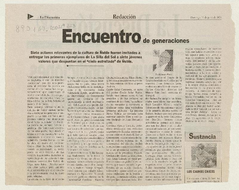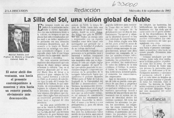 "La silla del sol" en Concepción [artículo] Carlos René Ibacache I.