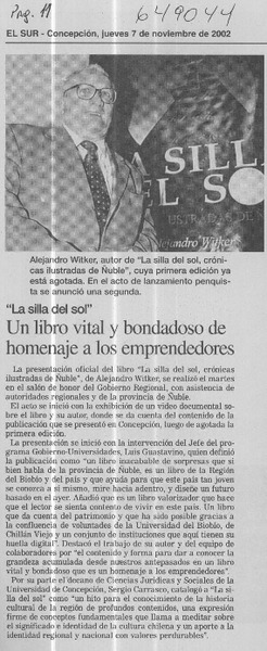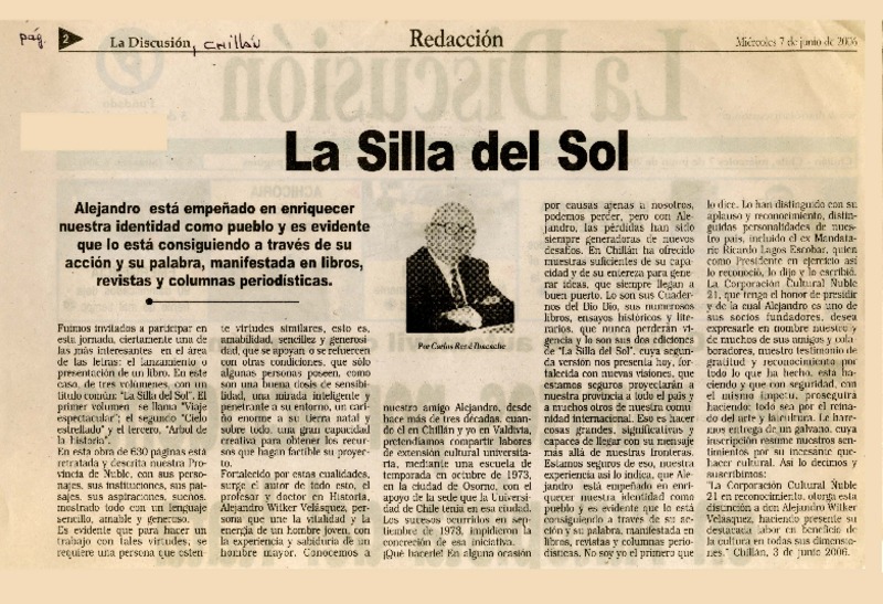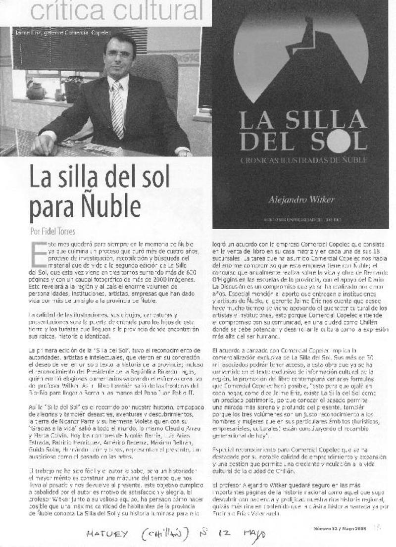 La silla del sol para Ñuble [artículo] Fidel Torres.