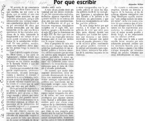Por qué escribir [artículo] Alejandro Witker.