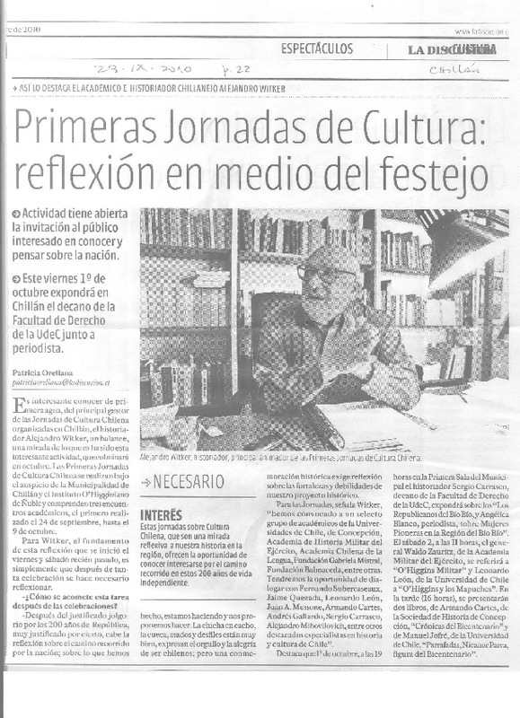 Primeras jornadas de cultura [artículo] Patricia Orellana.