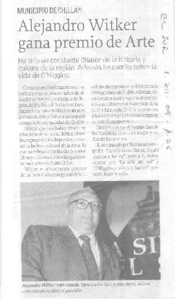 Alejandro Witker gana premio de arte [artículo].