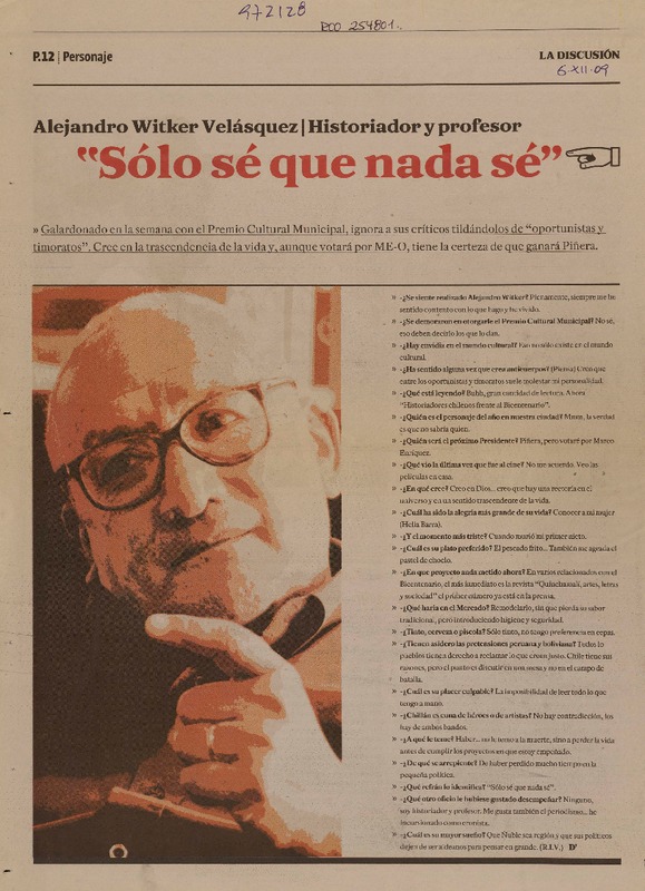 "Sólo sé que nada sé" (entrevista) [artículo] R. I. V.