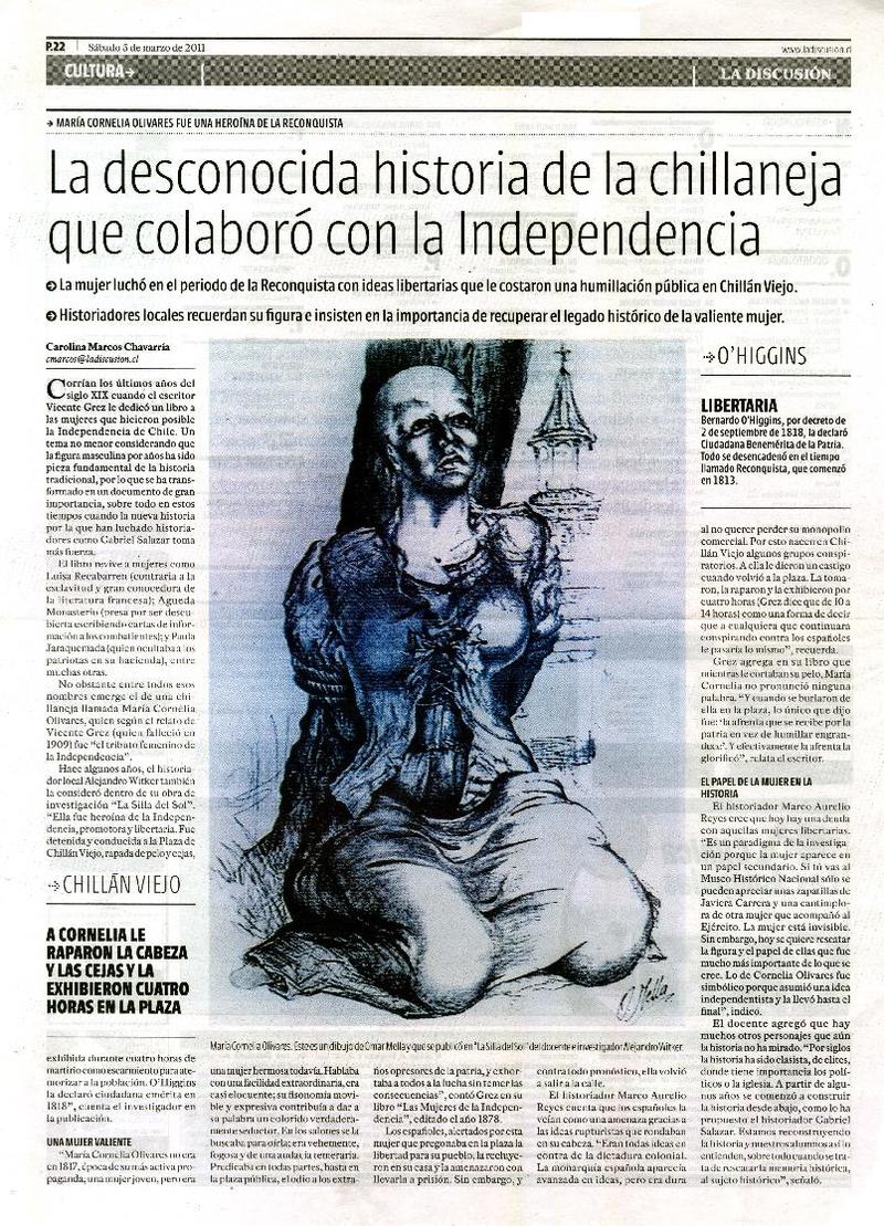 La desconocida historia de la chillaneja que colaboró con la independencia [artículo] Carolina Marcos Chavarría.