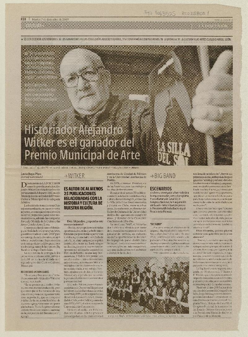 Historiador Alejandro Witker es el ganador del premio municipal de Arte [artículo] Lucía Rojas Plass.