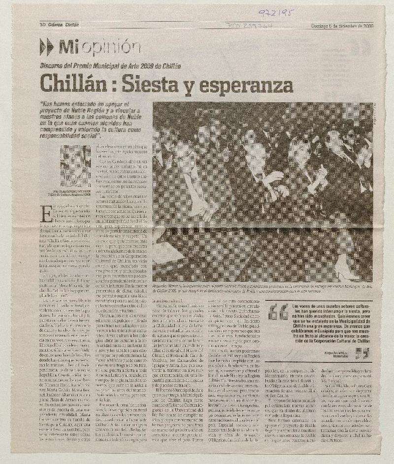 Chillán: siesta y esperanza [artículo] Alejandro Witker.