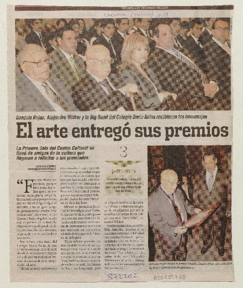El arte entregó sus premios [artículo] Patricia Fierro.