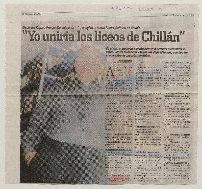 "Yo uniría los liceos de Chillán" (entrevista) [artículo] Patricia Fierro.