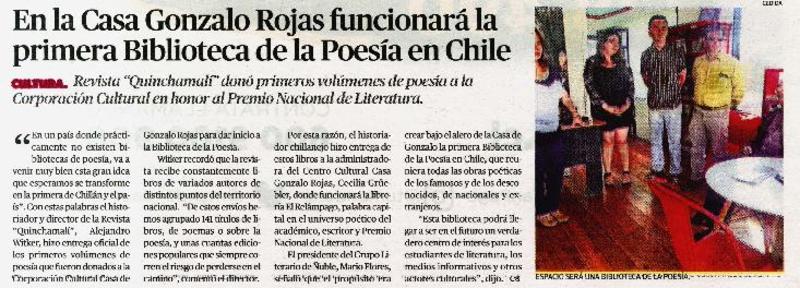 En la casa de Gonzalo Rojas funcionará la primera Biblioteca de la Poesía en Chile. [artículo]