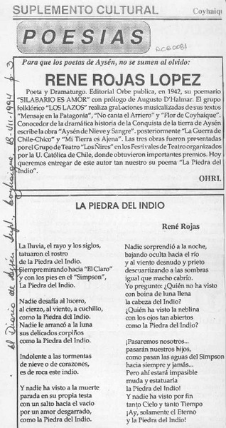 El hierático poeta René Rojas López [artículo] Óscar Aleuy R.