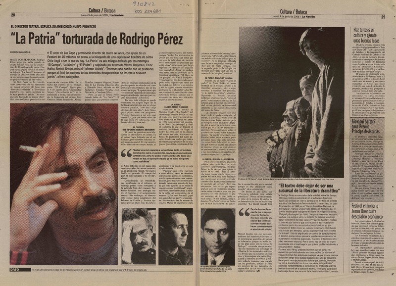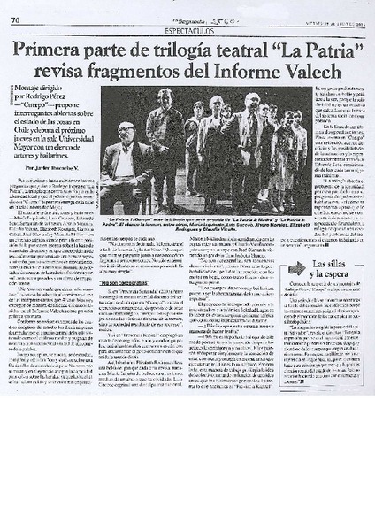 Primera parte de trilogía teatral "La Patria" revisa fragmentos del Informe Valech. [artículo] Javier Ibacache V.