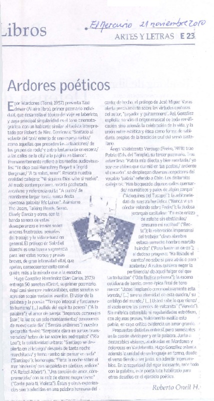 Autores chilenos - Valdebenito Verdugo, Ángel - Mardones, Egor - Taxi driver - González Hernández, Hugo - 50 sonetos - Patria