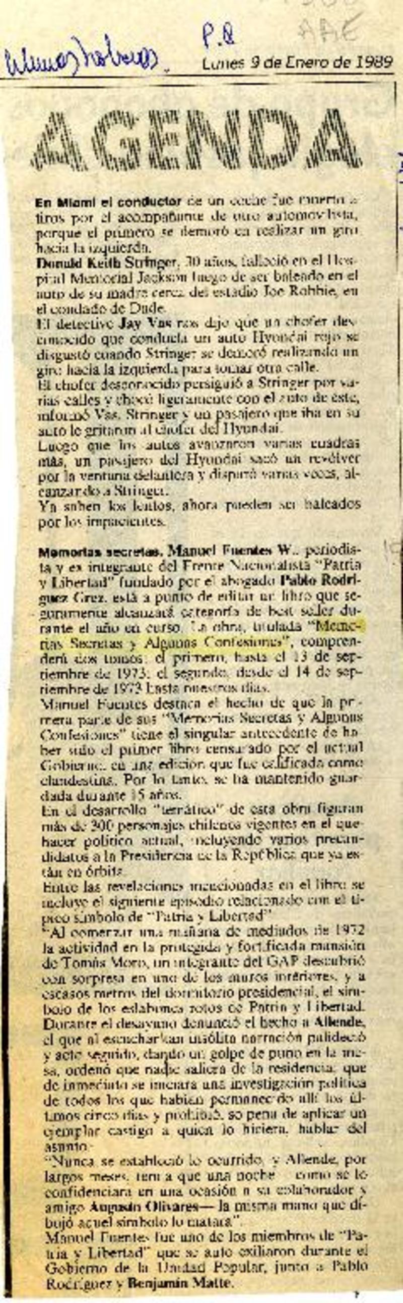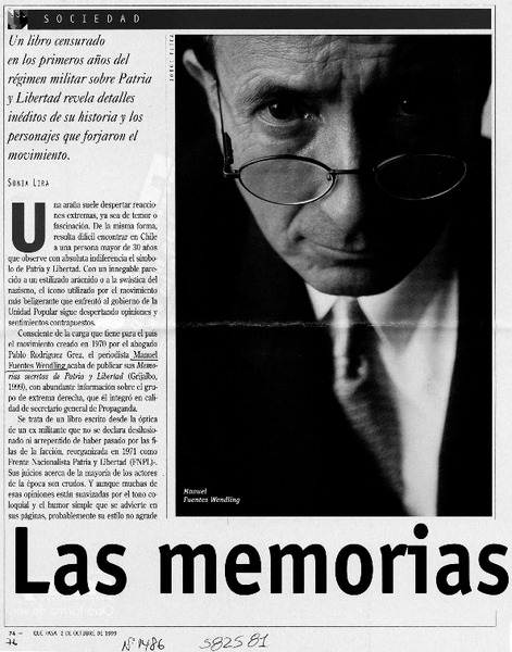 Autores chilenos - Fuentes Wendling, Manuel - Memorias secretas de Patria y Libertad