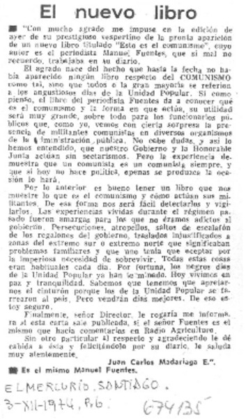El nuevo libro [artículo] Juan Carlos Madariaga E.