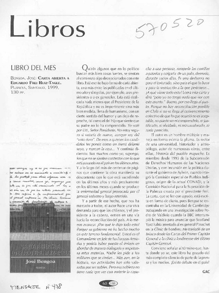 Bengoa le escribe a Frai [artículo] Antonio J. Salgado.