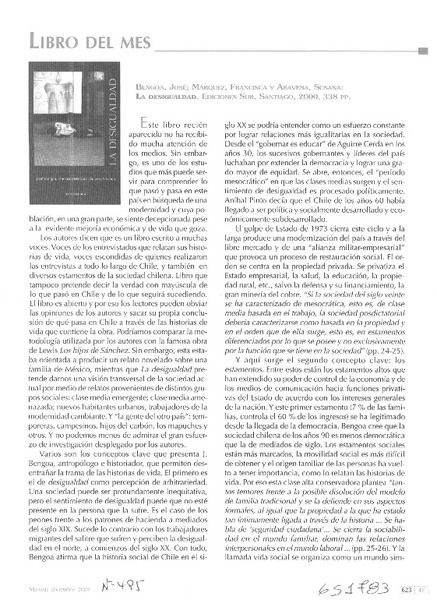 Autores chilenos - Márquez, Francisca - Bengoa, José - Aravena, Susana - Desigualdad