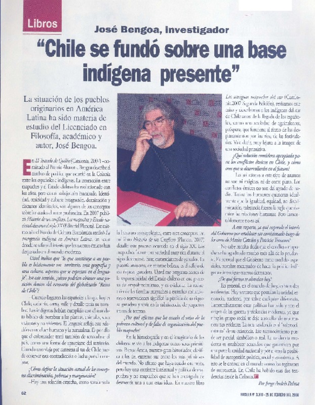 Autores chilenos - Entrevistas - Bengoa, José - Tratado de Quilín