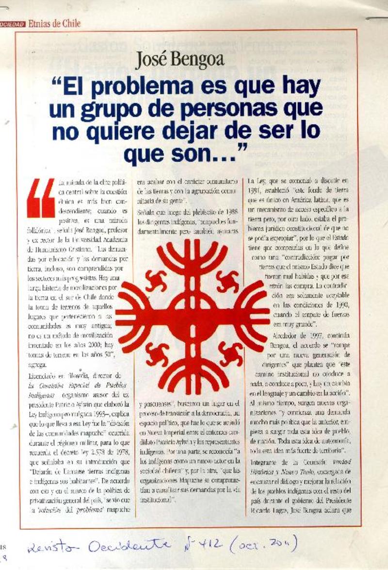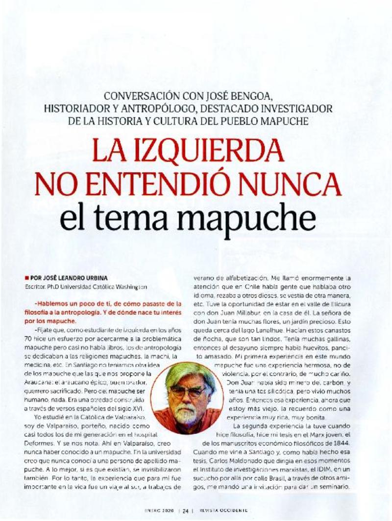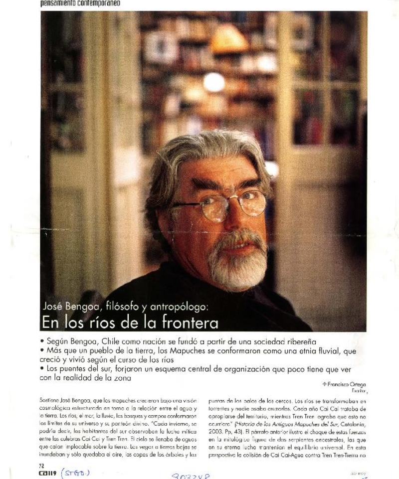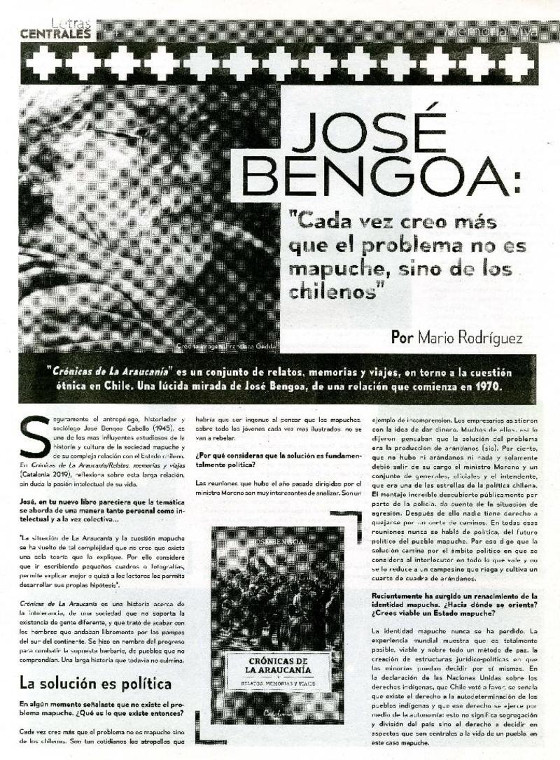 José Bengoa : "Cada vez creo más que el problema no es mapuche, sino de los chilenos" [artículo] Por Mario Rodríguez.