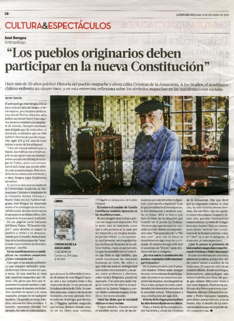 José Bengoa al rescate de nuestra historia [entrevista] [artículo]