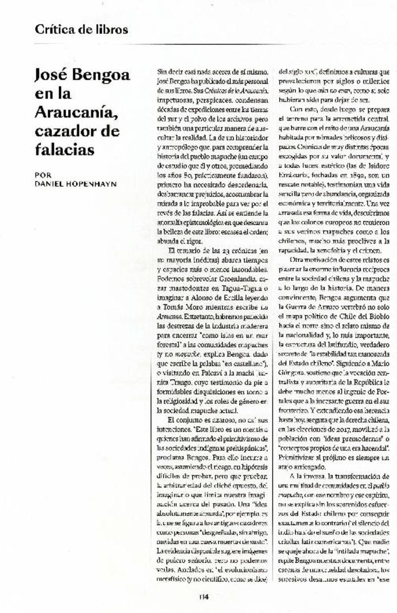 José Bengoa en la Araucanía, cazador de falacias [artículo] Daniel Hopenhayn.