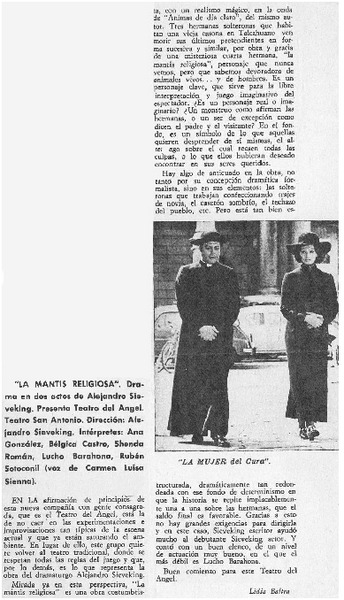 La mantis religiosa" [artículo] Lidia Baltra.