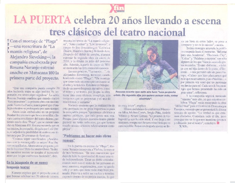 La Puerta celebra 20 años llevando a escena tres clásicos del teatro nacional [artículo] X. V. G.
