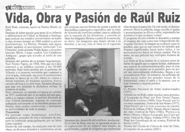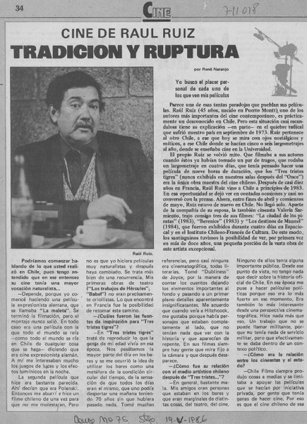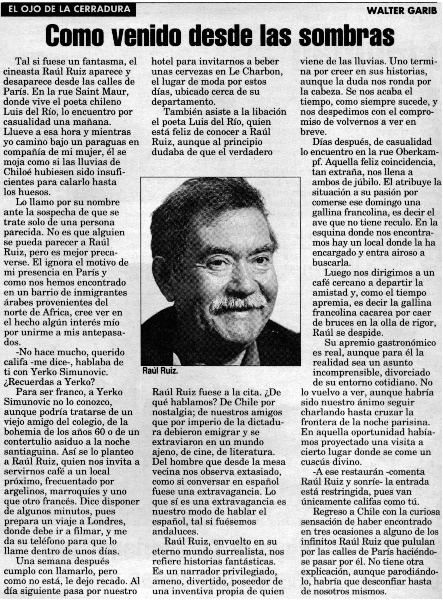 Ese día con Raúl Ruiz: [entrevista] [artículo] Claudia Alamo.