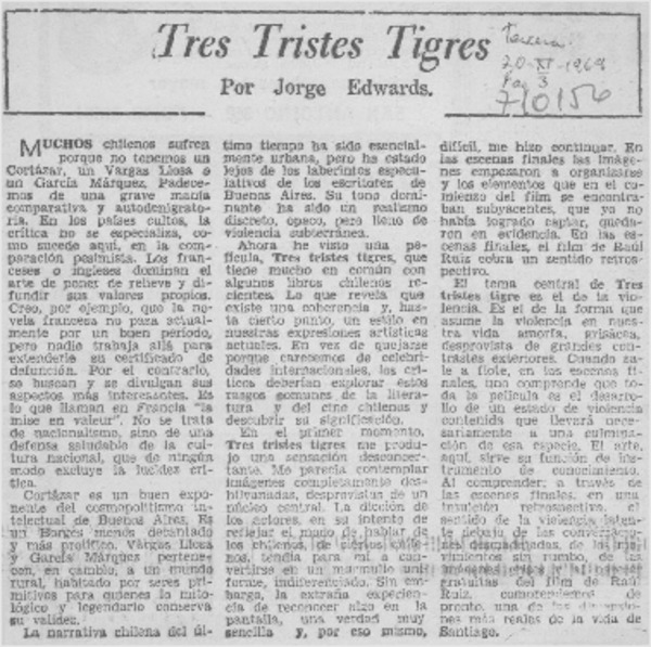 Tristeza y violencia de los tigres [artículo] Carlos Ossa.