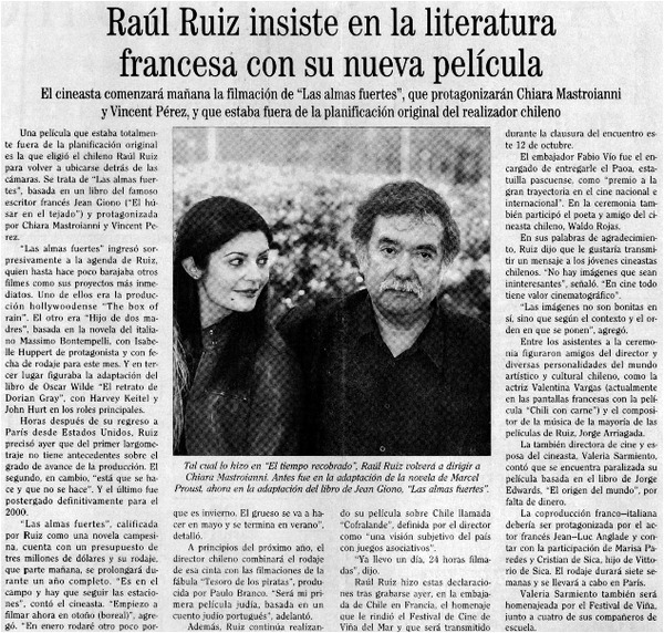 Raúl Ruiz insiste en la literatura francesa con su nueva película [artículo]