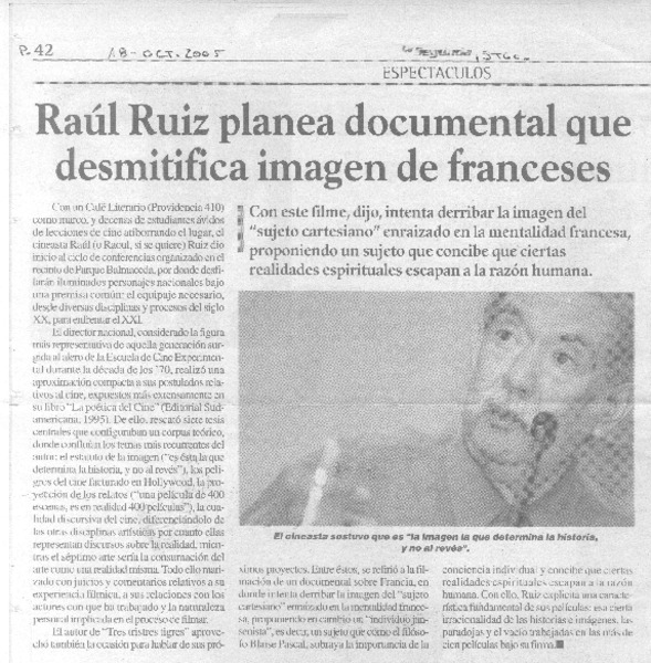 Raúl Ruiz planea documental que desmitifica imagen de franceses [artículo]