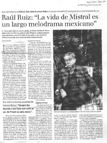 Raúl Ruiz: "La vida Mistral es un largo melodrama mexicano" [artículo] Rodrigo Miranda.