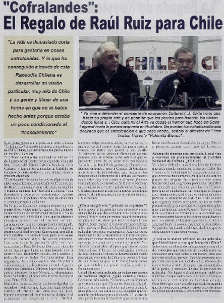 El regalo de Raúl Ruiz para Chile : [entrevista] [artículo]