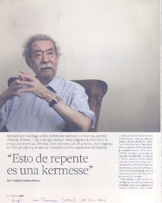 Ruiz traslada su universo al teatro [artículo] Verónica Marinao.