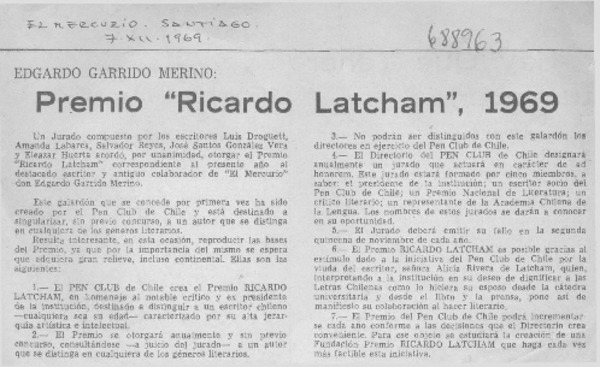 Edgardo Garrido Merino, premio de literatura. [artículo]