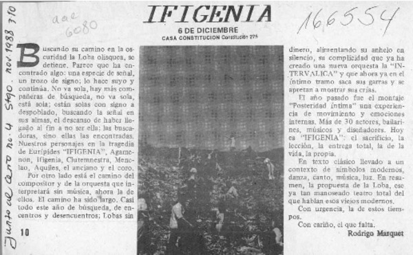Dos meses con "Ifigenia en Aulide" [artículo].