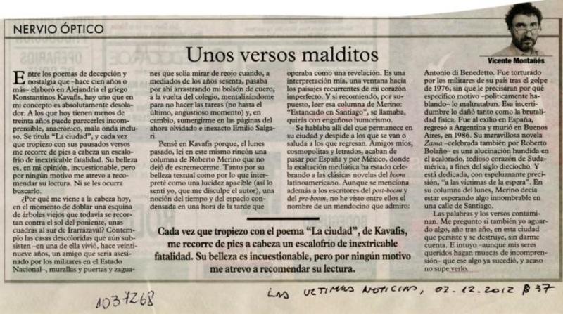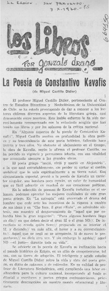 Miguel Castillo Didier "Kavafis siempre está cerca" [artículo] Mario Rodríguez Ordenes