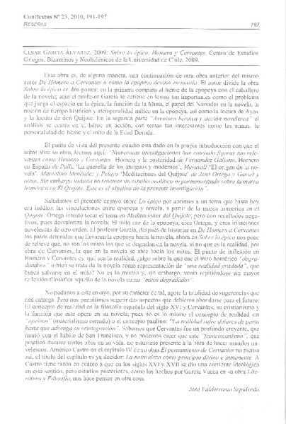 Autores chilenos - Autores españoles - Cervantes Saavedra, Miguel de - Autores griegos - García Alvarez, César - Sobre lo épico. Homero y Cervantes - Homero