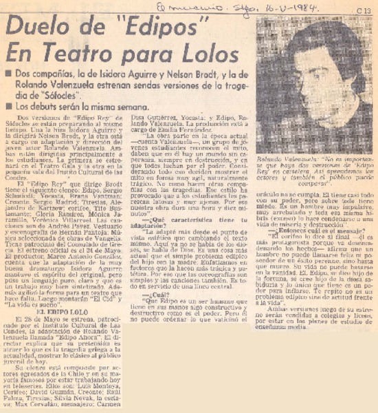 Duelo de "Edipos" en teatro para lolos : [entrevista] [artículo]