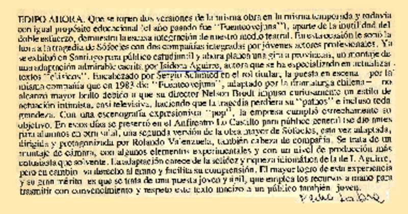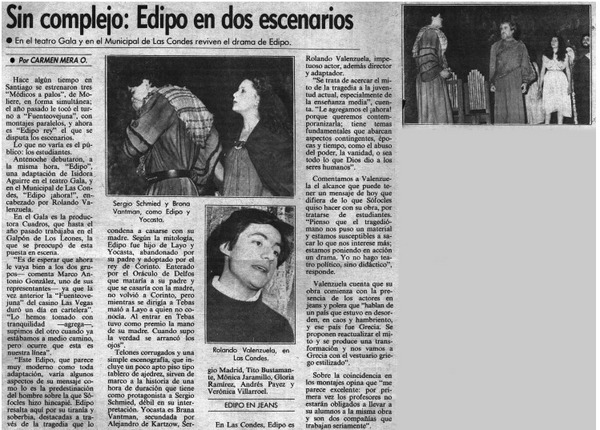 Aguirre, Isidora - Sófocles - Valenzuela, Rolando - Autores griegos - Autores chilenos - Edipo ahora - Edipo rey