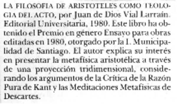 Autores chilenos - Filosofía de Aristóteles como teología del acto - Aristóteles - Vial Larraín, Juan de Dios - Autores griegos