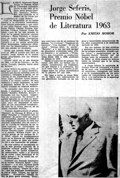 Jorge Seferis, premio Nóbel de Literatura 1963 [artículo] Emilio Mohor.
