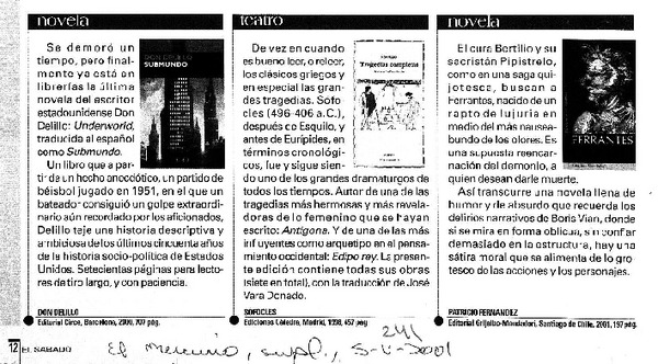 Autores chilenos - Autores estadounidenses - Autores griegos - Fernández Chadwick, Patricio - Ferrantes - Sófocles - Delillo, Don - Submundo - Tragedias completas