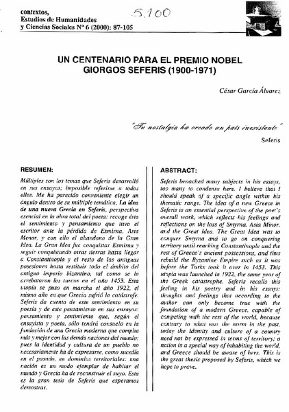 Un centenario para el Premio Nobel Giorgos Seferis (1900-1971) [artículo] César García Alvarez.