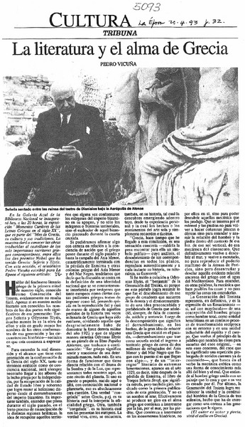 La literatura y el alma de Grecia [artículo] Pedro Vicuña.