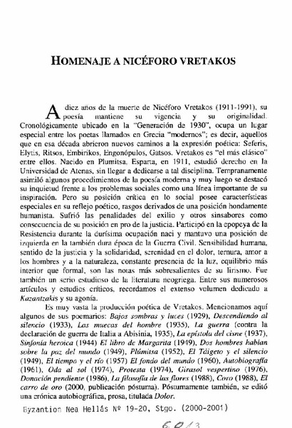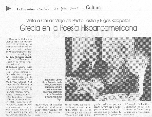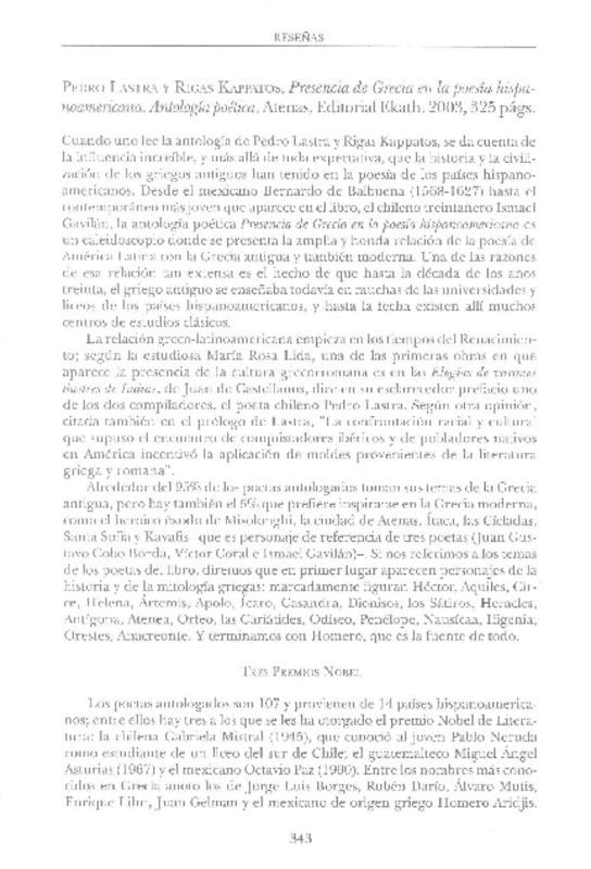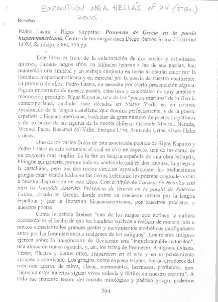 Autores chilenos - Lastra, Pedro - Autores griegos - Kappatos, Regas - Presencia de Grecia en la poesía hispanoamericana"