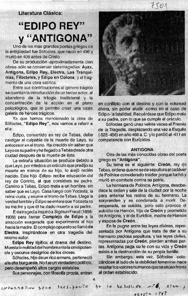 Autoras chilenas - Aguirre, Isidora - Autores griegos - Sófocles - Edipo Rey