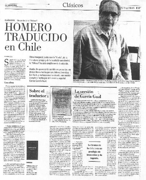Homero traducido en Chile (entrevista) [artículo] Patricio Tapia.