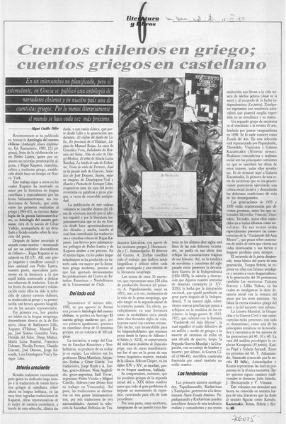 Cuentos chilenos en griego; cuentos griegos en castellano [artículo] Miguel Castillo Didier.